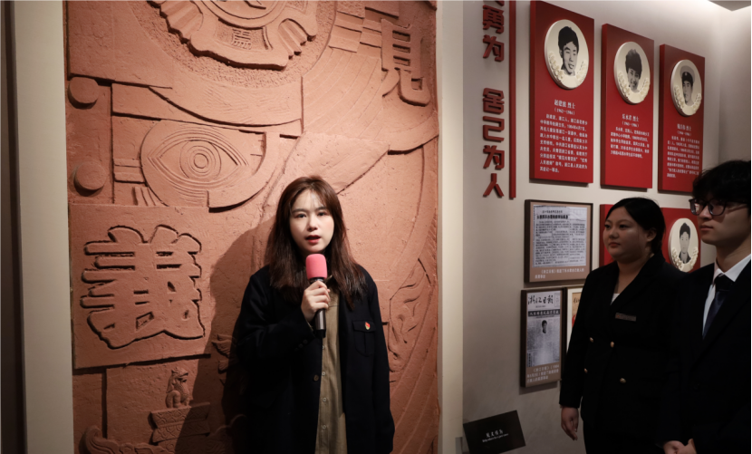 仪式结束后,师生移步革命烈士纪念馆内,开启一场穿越时空的精神对话。学生代表邵凯迪、胡雅欣、薛佳欣、王宇瀚、李文涛、施涵菲为大家讲解。一件件饱经沧桑的实物、一段段详实珍贵的史料、一幅幅定格历史的影像,生动再现革命先辈浴血奋战、不懈奋斗的光辉历程。锈迹斑斑的武器、泛黄褶皱的家书、弹痕累累的军装,无声诉说着烽火岁月里的赤诚与坚守,让在场青年深刻感悟今日和平幸福生活的来之不易。