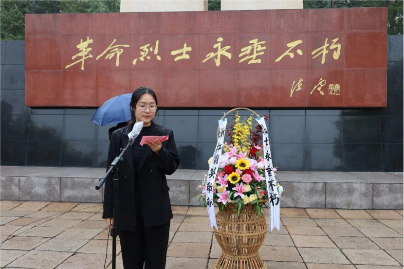 校团委副书记周舟老师作总结讲话。她深情寄语在场学生:“历史是最好的教科书,也是最好的清醒剂。愿大家成为眼里有光、脚下有路、肩上有责的新时代青年,以英烈精神为炬,照亮信仰之路;以所学知识为力,夯实报国之基,用青春践行‘请党放心,强国有我’的铮铮誓言。”