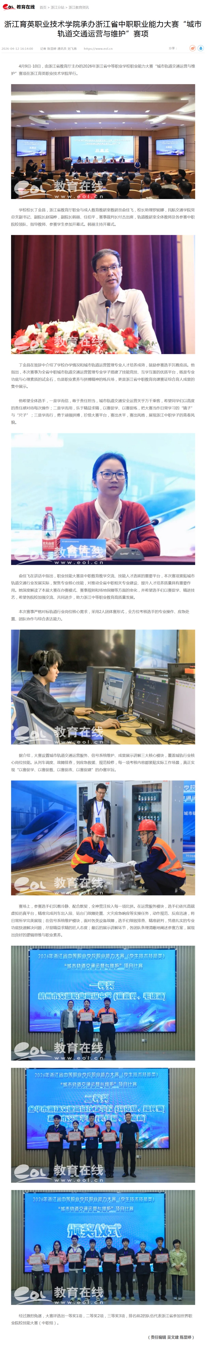 4月9日-10日,由浙江省教育厅主办的2026年浙江省中等职业学校职业能力大赛“城市轨道交通运营与维护”赛项在浙江育英职业技术学院举行。