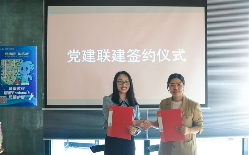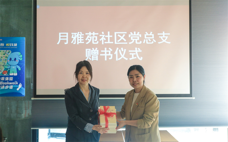 活动现场,两面“红色书墙”成为焦点。《红岩》《青春之歌》《红日》等经典著作主题海报整齐陈列,营造了庄严热烈的阅读氛围。仪式上,我校机关党总支第二党支部与月雅苑社区党总支签署党建联建协议,双方达成共建共促、共赢发展的合作意向。社区向学校图书馆捐赠一批红色书籍,为校社共享红色资源注入新动力。