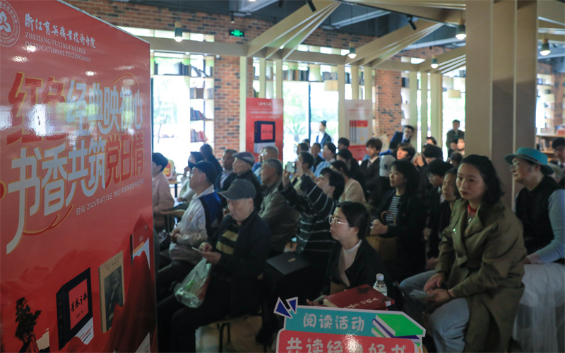 在第31个世界读书日来临之际,我校联合杭州市钱塘区白杨街道及月雅苑社区,举办“红色经典映初心 书香共筑党情日”沉浸式阅读体验活动。活动依托“数智阅读”特色载体,通过校社联动、光影沉浸等形式,让红色经典走出馆藏,实现可感可触、入脑入心。白杨街道党工委、月雅苑社区党总支、育英职院相关部门领导与100余名师生、社区党员代表共同参与。