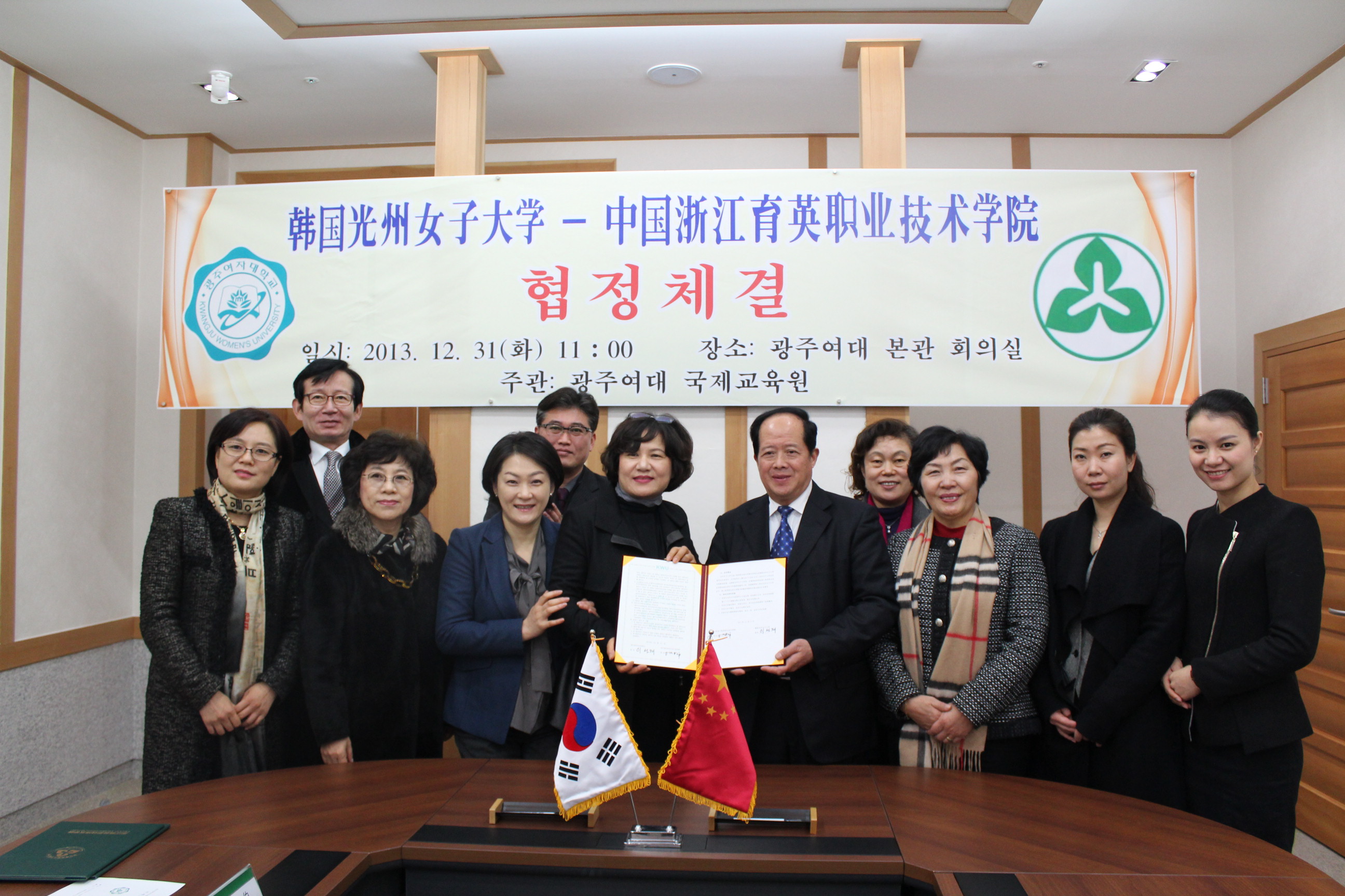 2013年12月,洪致平院长与韩国光州女子大学李善宰校长...