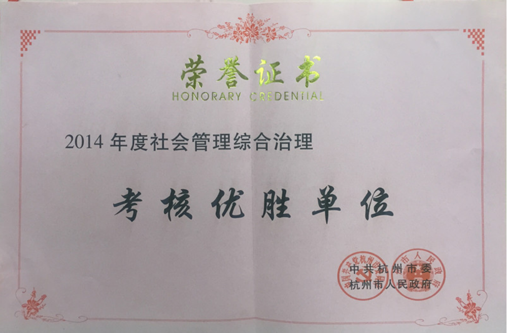 学院2015年被评为杭州市社会管理综合治理考核优胜单位