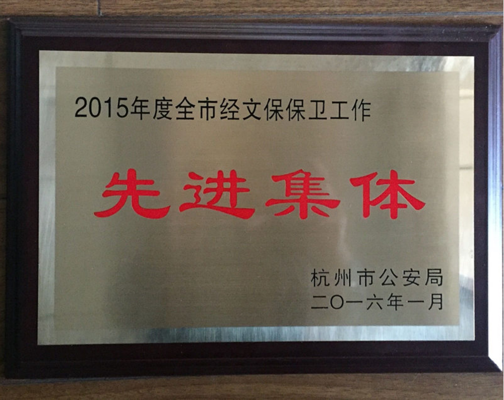 学院2016年获得杭州市经文保保卫工作先进集体称号