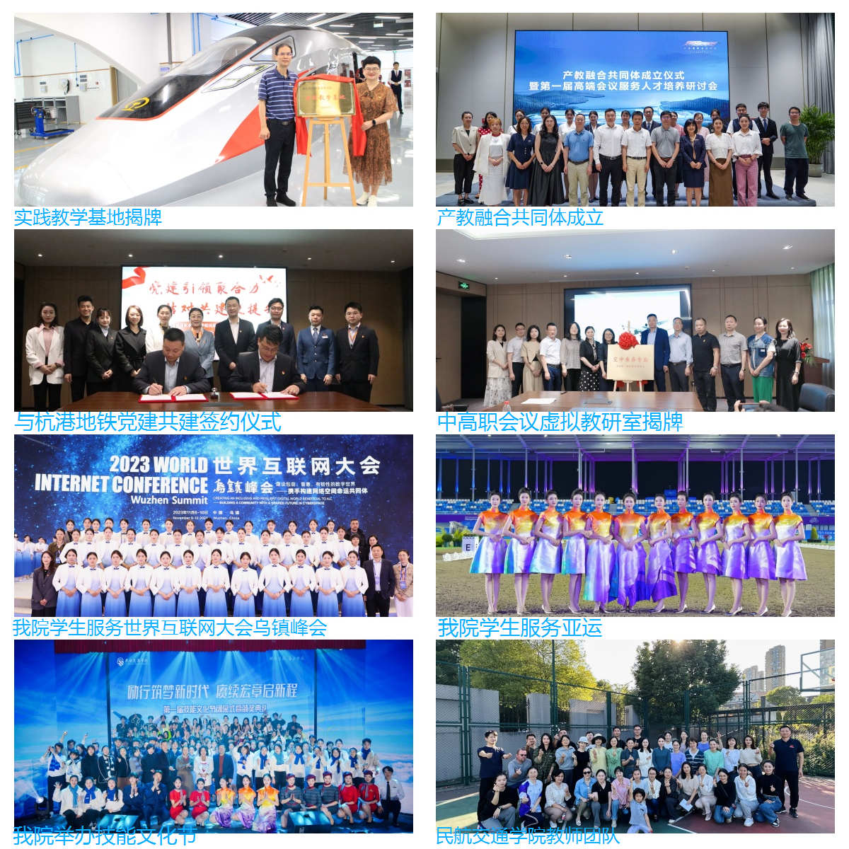 学院开设空中乘务(含低空运营服务与管理方向)、城市轨道交通运营管理、高速铁路客运服务、民航安全技术管理等专业,构建了覆盖“运营服务与管理”关键环节的现代交通运输服务专业群。作为浙江省创办最早、专业最全、学生规模较大且就业率高的同类专业群之一,已入选杭州市首批新型专业群。